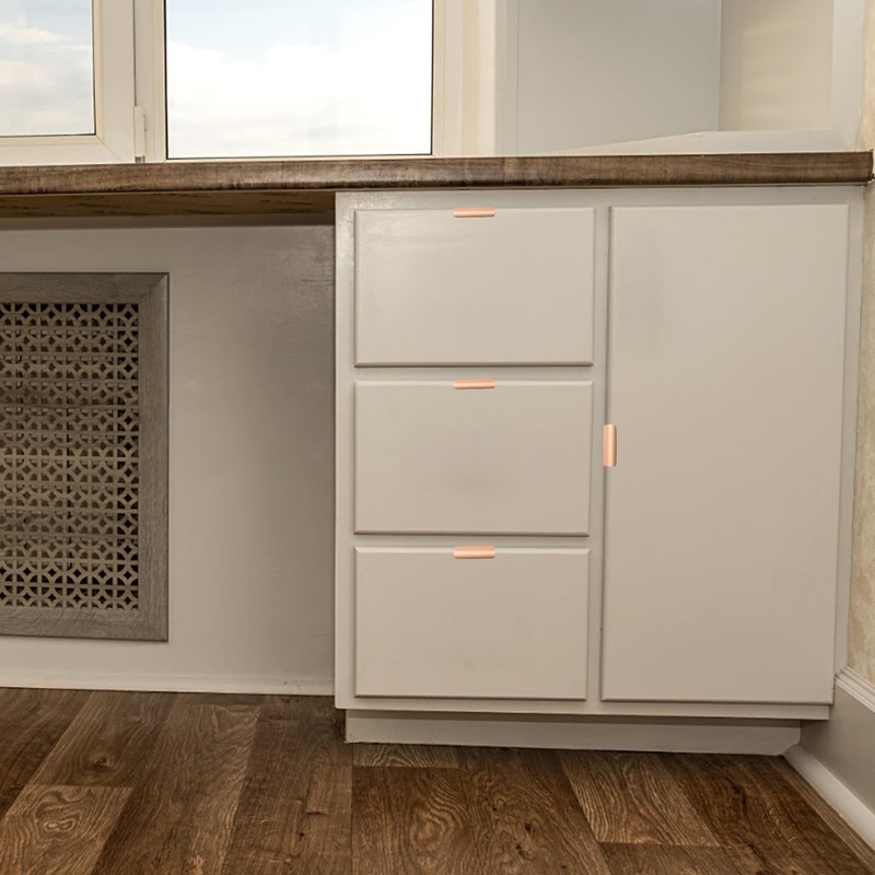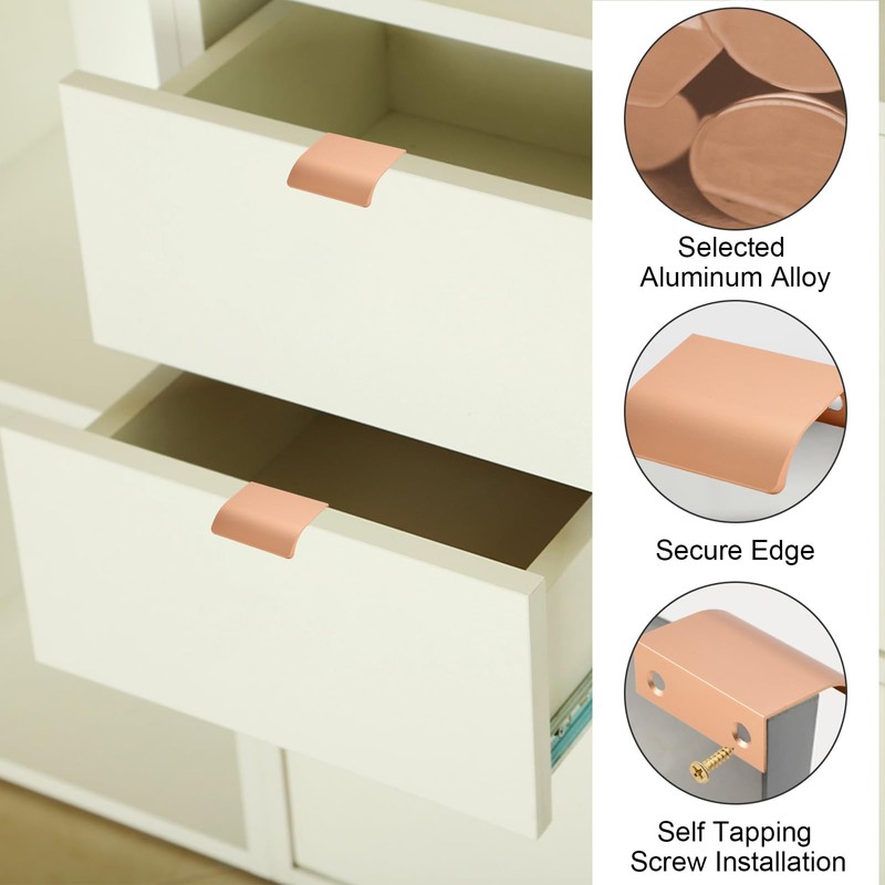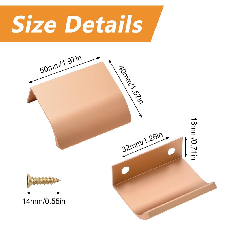 - đăPackage IncludedăEach package contains 8 intact Rose Gold edge-sealing handles and screws required for installation, making your installation easier and meeting your daily needs. This style is small in size and is not suitable for larger furniture, and you can install it after placing it on the furniture to compare the size ratio effect before installation.