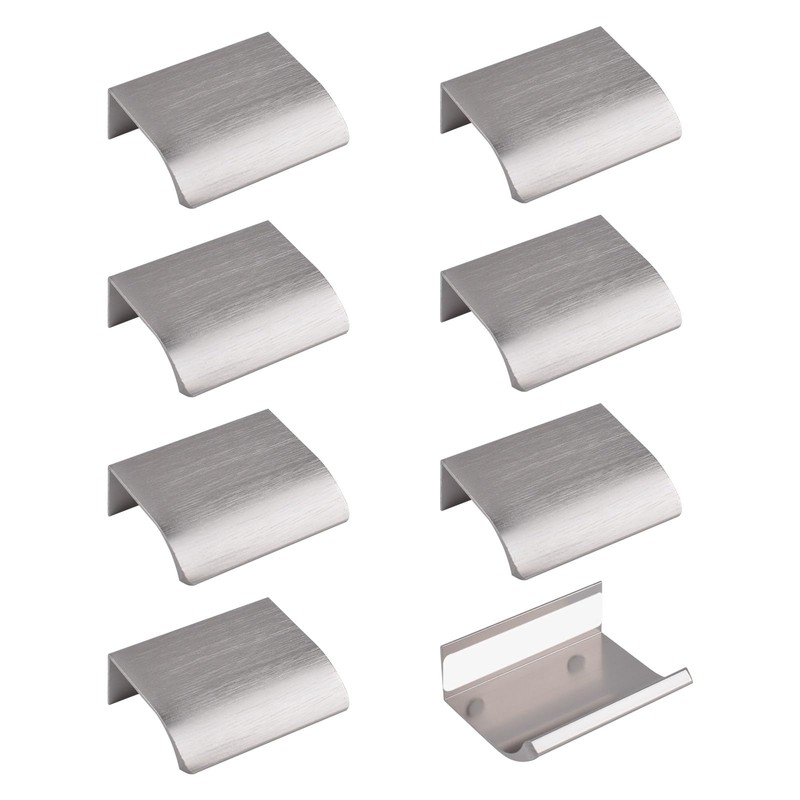 MOROBOR Finger Edge Pull, 8pcs Concealed Handle Aluminum Alloy Invisible Handle 50mm Brushed Nickel Furniture Handles Self-Stick Instant Cabinet Drawer Pulls