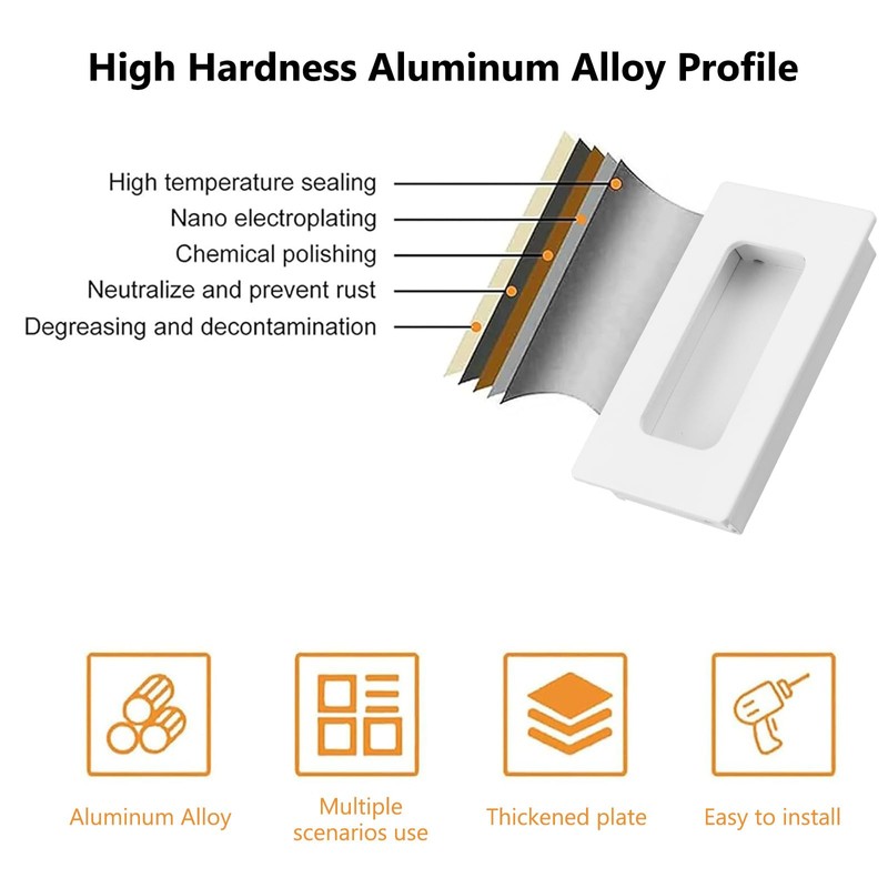 - Easy to install: The recessed door pulls is fixed perfectly into the hole by 4pcs M4*22mm screws, invisible screws on top surface makes it modern and simple.