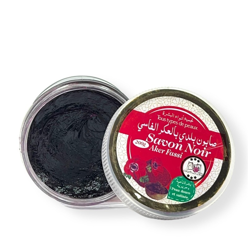Moroccan Black Soap with Organic Aker Fassi, Traditional Hammam 100% Beldi Soap - Natural Skin Cleansing & Brightening - Exfoliating Scrubber – Deep Cleanse & Silky Smooth Skin