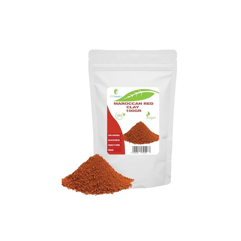 Moroccan Red Clay - 100g - DIY Face Masks, Body Masks, Hair Masks, Gentle Scrubs and Scrubs, Soap Making, Anti-Ageing and Skin Tightening, Natural