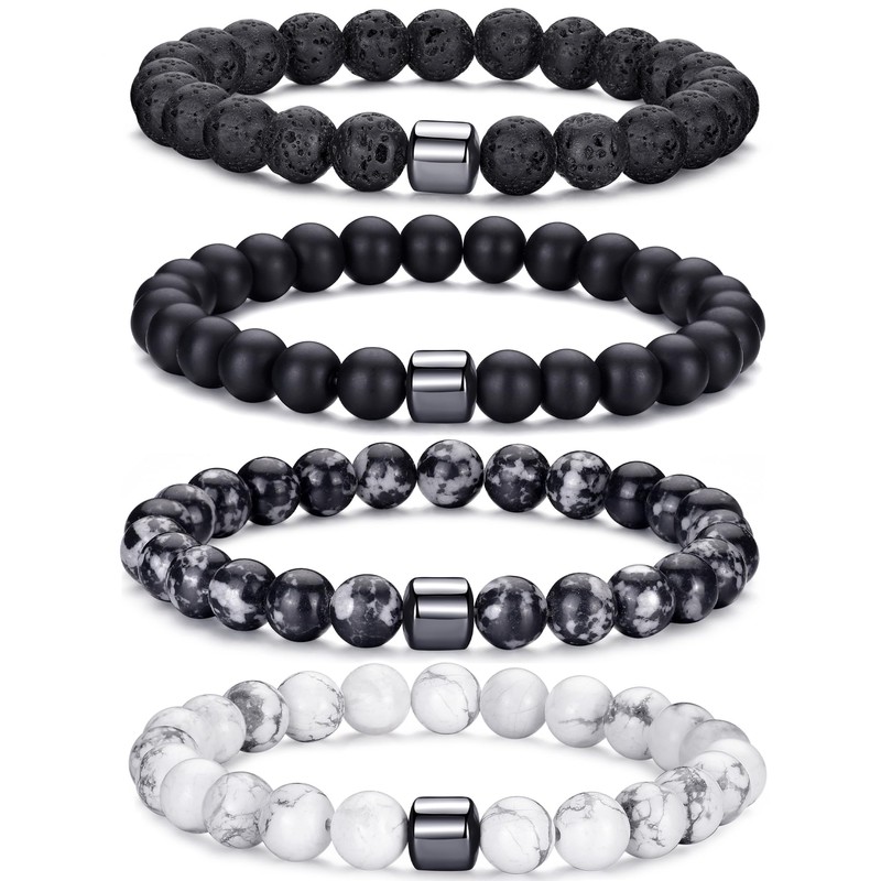 - 4Pcs Mens Bracelet Set: You will receive 4 mens beaded bracelets, including lava rock bracelets for men, grey beaded bracelets for men, white and frosted black bead bracelets, etc. Each mens bracelets beads is unique, and beaded bracelets for men are great choice to give to yourself or others.