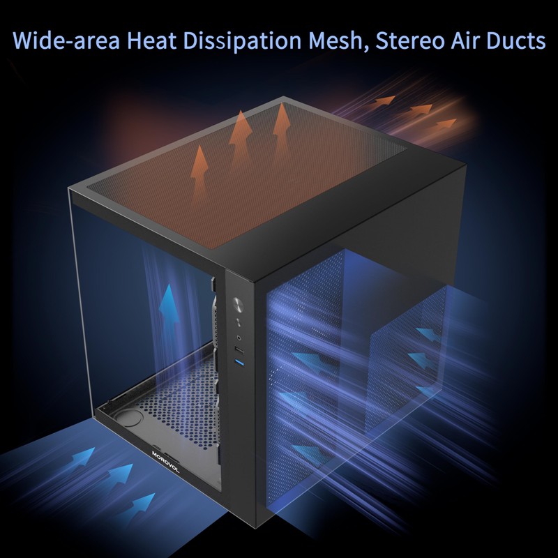 • Max 7 Fan Cooling Configuration - The micro case supports multi-fan installation, users can pick the right fan for installation to add cooling air ducts to the case. MOROVOL equips the matx case with 3 simple cooling fans for gifts, the number is not much but the precision, but also for the case pc cooling to contribute to the effort.