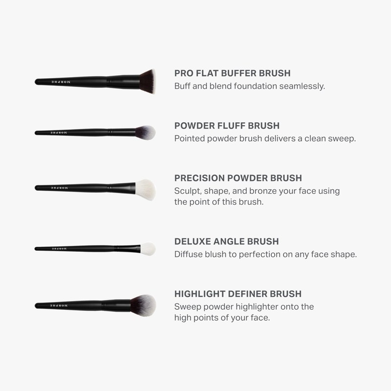 Morphe Face The Beat Makeup Brushes - 5 Piece Makeup Brush Set with Foundation, Blush, Contour & Blending Brushes - Made with Synthetic Bristles & Includes Makeup Brush Case (5 Count)