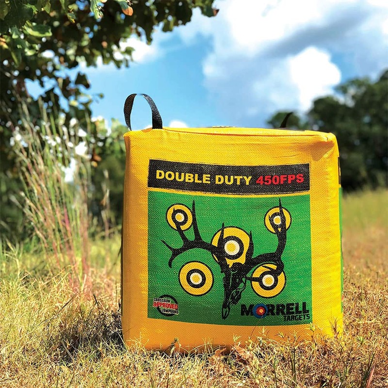 Morrell Double Duty 450 FPS Cube Field Point Archery Bag Target with Traditional Bullseyes, Nine-Ball, Dartboard Game, and Deer Vitals, Yellow