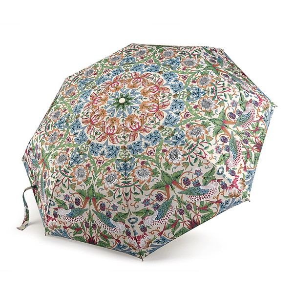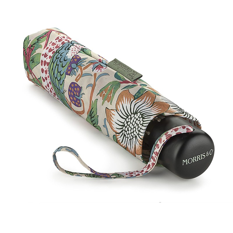 Morris & Co. Minilite Umbrella, Strawberry Thief Cream Print, Strong Lightweight Wind Resistant Frame