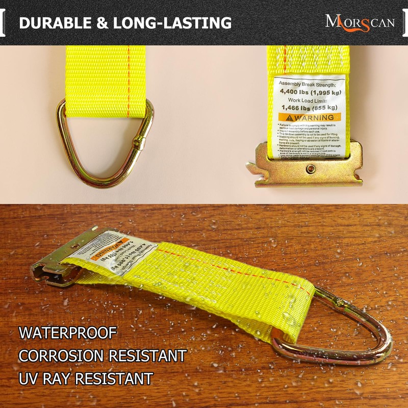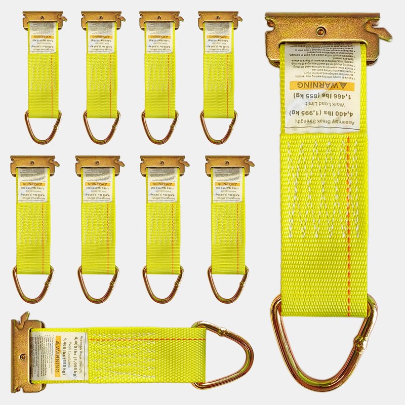 - HEAVY DUTY - Each etrack strap offer supreme quality with a 4,400 lbs assembly break strength and 1,466 lbs safe working load limit. The D-Rings at the ends as anchors allow you to easily connect all cargo tie-down ratchet and cam buckle straps, ropes, chains, bungee cords, hooks, etc.