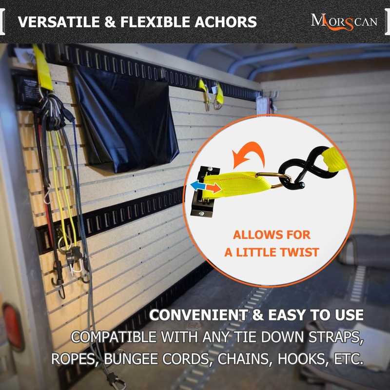 - VERSATILE ANCHORS - The E-Track Tie-Offs are compact and portable, fit all E Track/X Track trailer tie-down rails or E port single slots. For cargo management in Trucks, Cargo, Bikes, Boats in Trailers, Trailers, Motorcycles, Vans, Warehouses, Docks, Marinas, Pickups, Flatbeds, ect.
