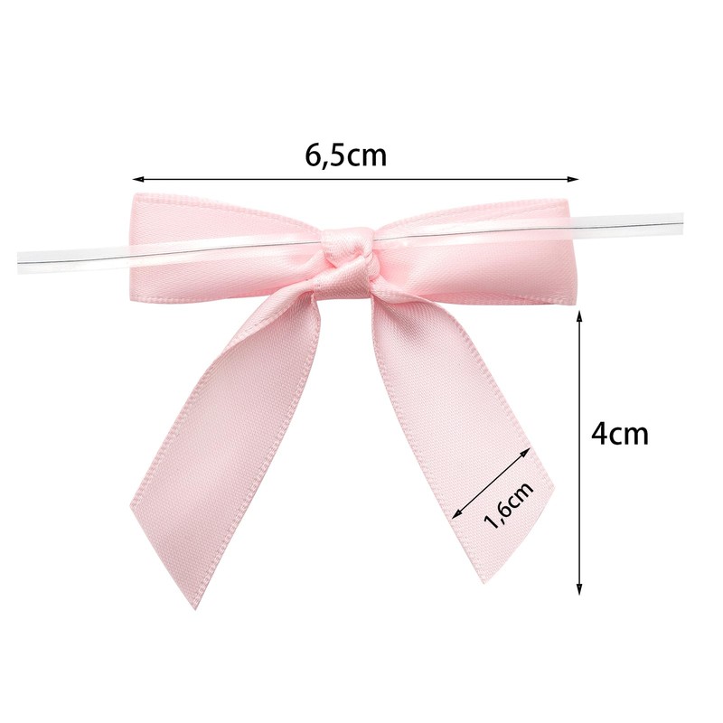 1. Made from 100% double sided polyester satin ribbon, each gift bow measures approximately 2.5 inches and comes with a 4 inch removable clear twist lock for quick and secure attachment. The pre-tied design saves time and effort and makes them the perfect choice for gift bows, crafts and special occasions.