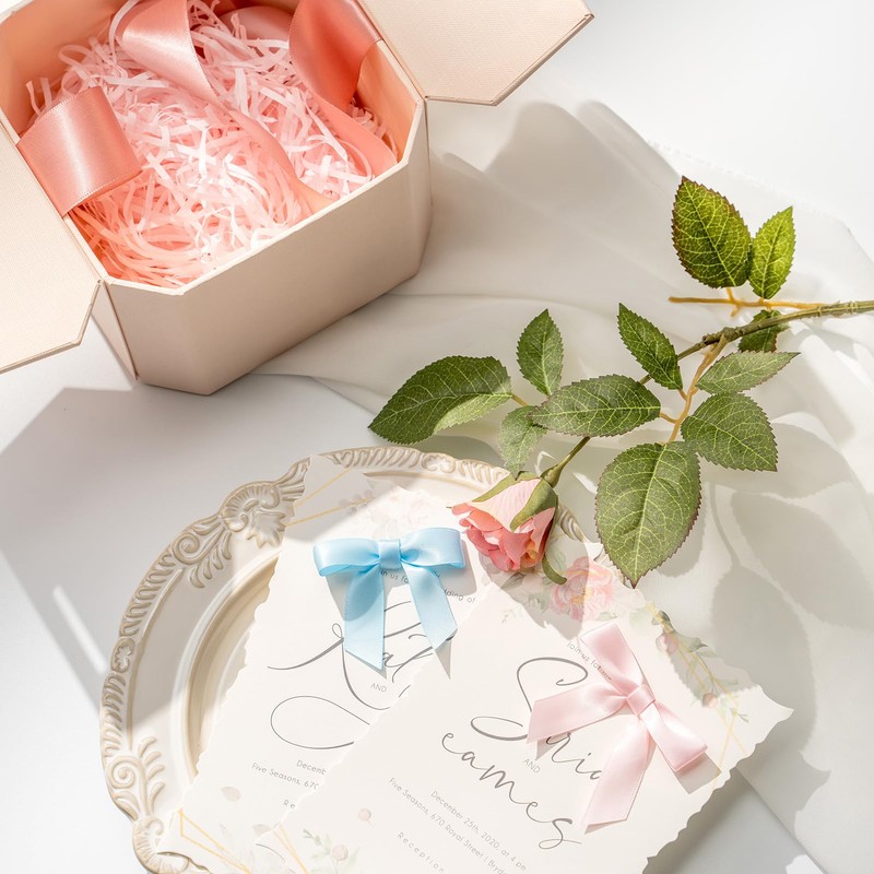 4. Each pack contains 50 gift bows, which are enough to meet all your decorating needs. The simple and practical design allows you to effortlessly attach them to bags or packages and create a professional, elegant look in seconds. In addition, these gift bows can be glued or attached with glue dots, making them suitable for a variety of creative projects.