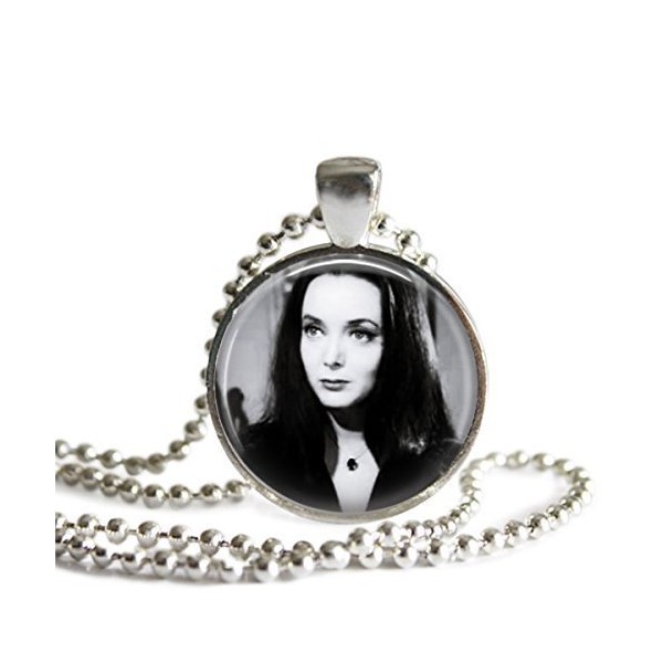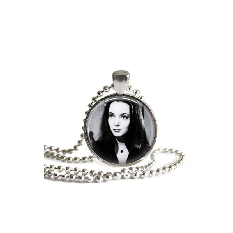Morticia Addams 1 inch Silver Plated Picture Pendant Necklace