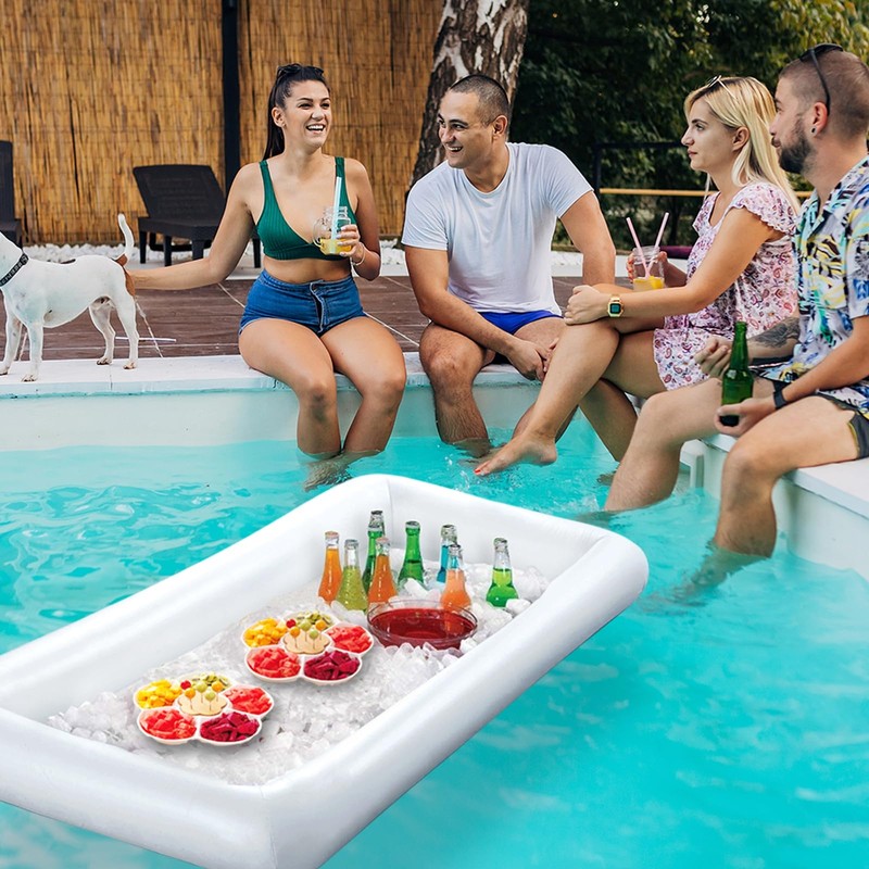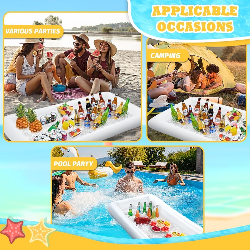 MorTime MorTime 4 PACK Inflatable Ice Serving Bar, 53"x25" Pool Party Buffet Drink Cooler, Ice Tray Food Drink Containers for Summer Parties