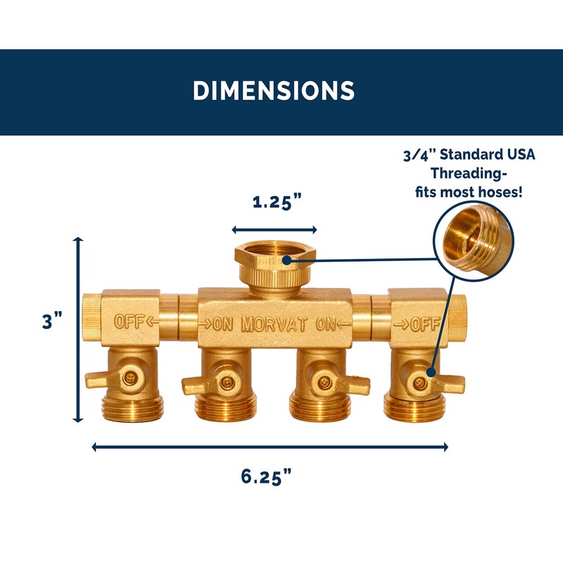 The Morvat water spigot splitter is constructed from solid brass and is the most heavy duty splitter out there. Resistant to rust and corrosion, it is the ultimate choice of garden faucet splitter. Each spout also has an ON/OFF valve for easy water flow control.