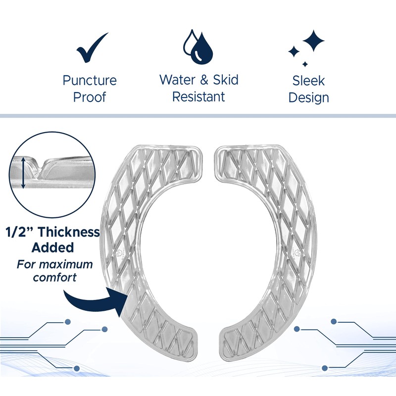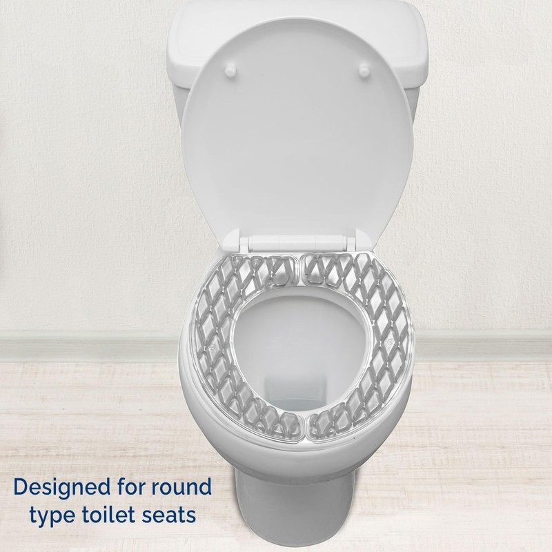 - ROUND TOILET SEAT- Sized to fit round toilet seats & commodes. Features a flat back allowing it to rest level against the chair to avoid moving during use.