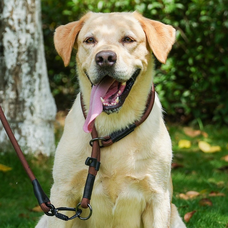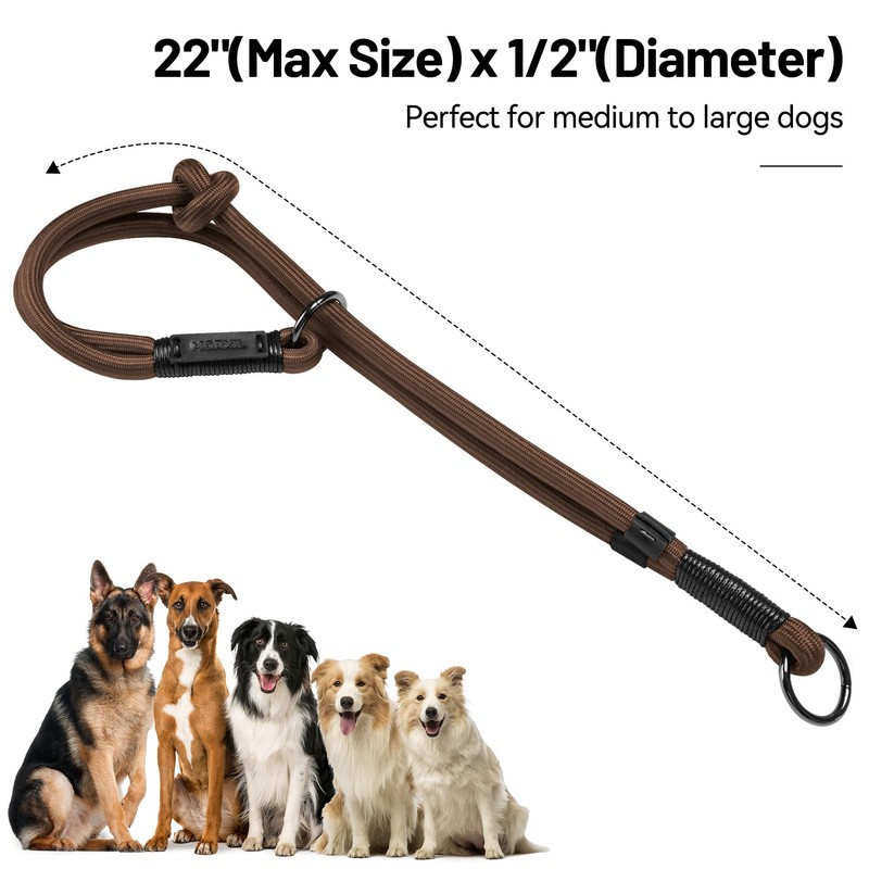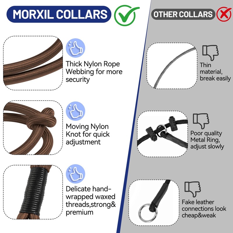 MORXIL Slip Dog Collar, Nylon Rope Dog Choker Collars with Adjustable Stopper, Heavy Duty Collar for Large Medium Dog Training (Brown)