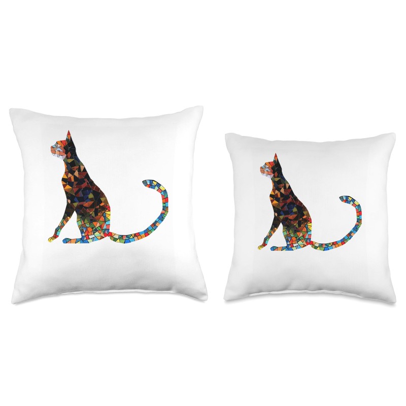 Mosaic Stretching Kitten Body Exercise Yoga Funny Cat Throw Pillow