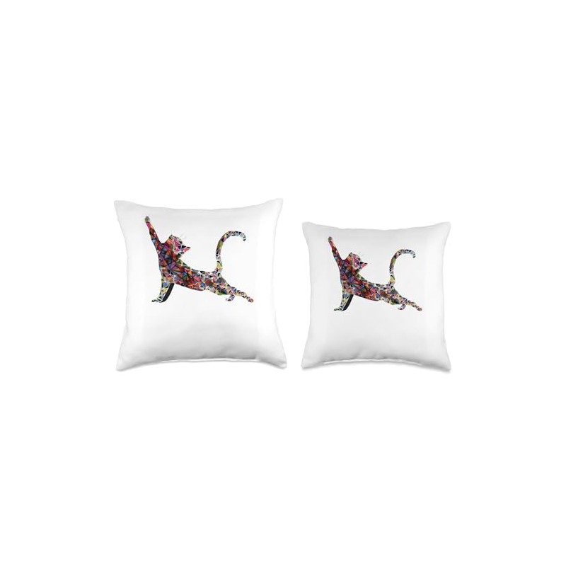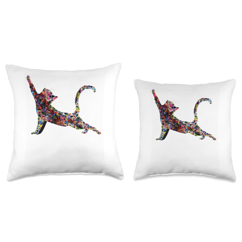 Mosaic Stretching Kitten Body Exercise Yoga Funny Cat Throw Pillow