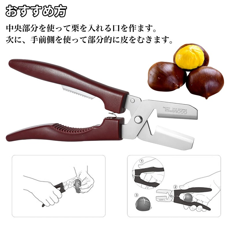 - [How to remove chestnut] The blade is firmly tucked into the chestnut leather and fixed it in place. When peeling, move the cutting blade in the direction of the blade. The chestnut demon skin is connected to the skin, so you can cut it open. Blade may slip and cause injuries if it is blocked alone. Be sure to bite the blade and peel. Tips for Removing Chestnut Shibuch: "Soak the chestnut in boiling water for 2 minutes". Older, dried chestnuts will soften the skin and become easier to remove if they are put in water overnight