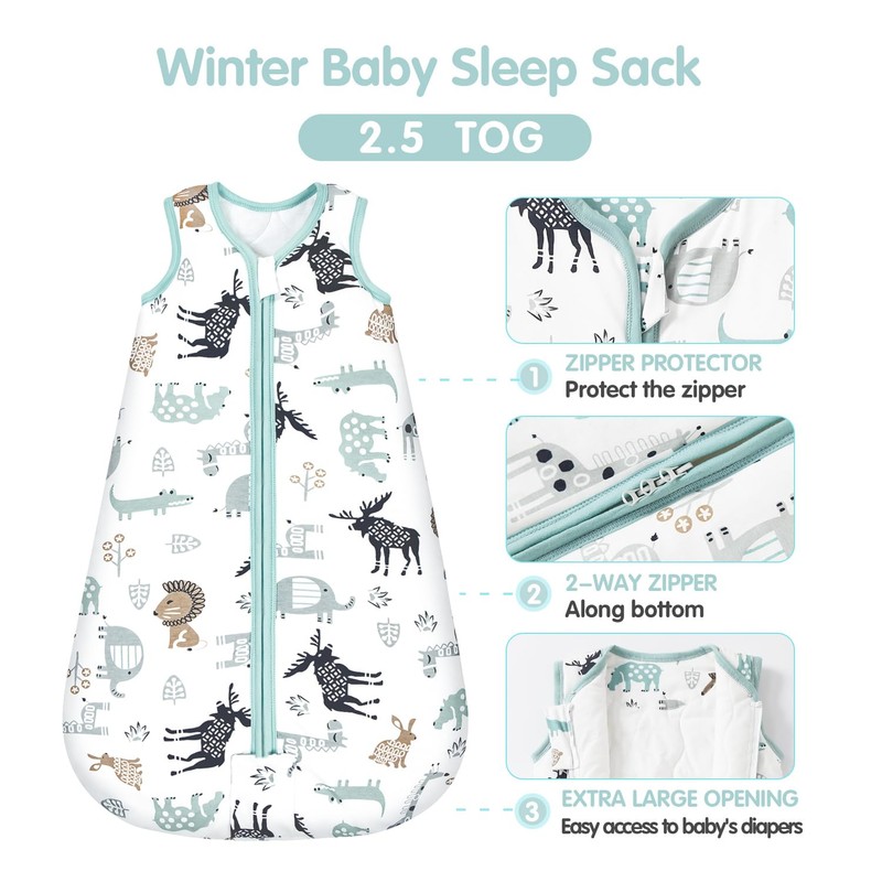 - Universal all year round: Our baby sleeping bag is 2.5 tog, super soft, comfortable with a sleeveless design and provides a wonderful sleeping state. It is suitable for room temperatures below 20 °C, so it can be used during all four seasons.