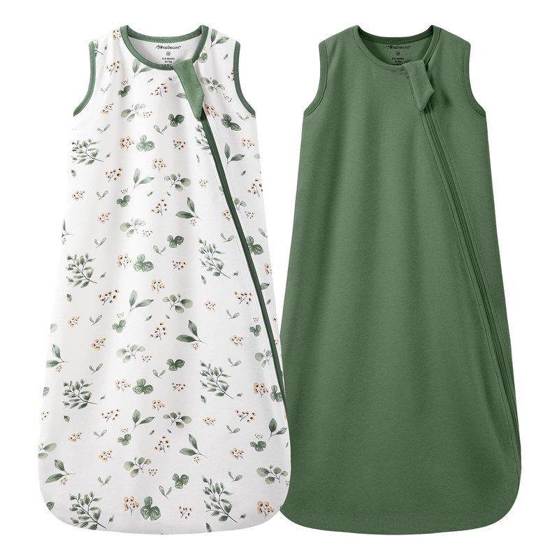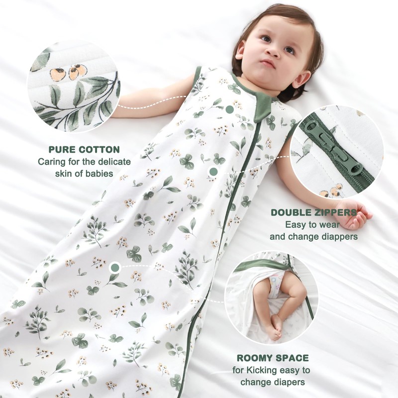 Mosebears Unisex Baby Sleep Sack Summer 0.5 Tog Wearable Blanket,Cotton Breathable with 2-Way Zipper(Dark Green&Plant,L(12-18 Months))