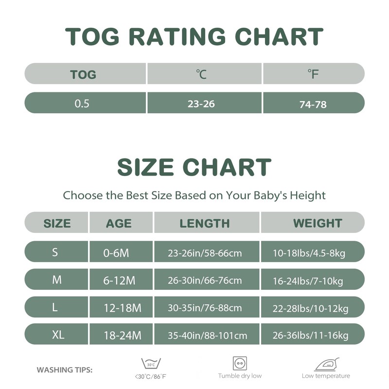 - 【Easy Care 】Our baby sleeping sack is machine washable at 30°C (86°F) and can be tumble-dried on low heat. Designed for repeated washing, it retains its shape and durability over time, ensuring long-lasting quality.