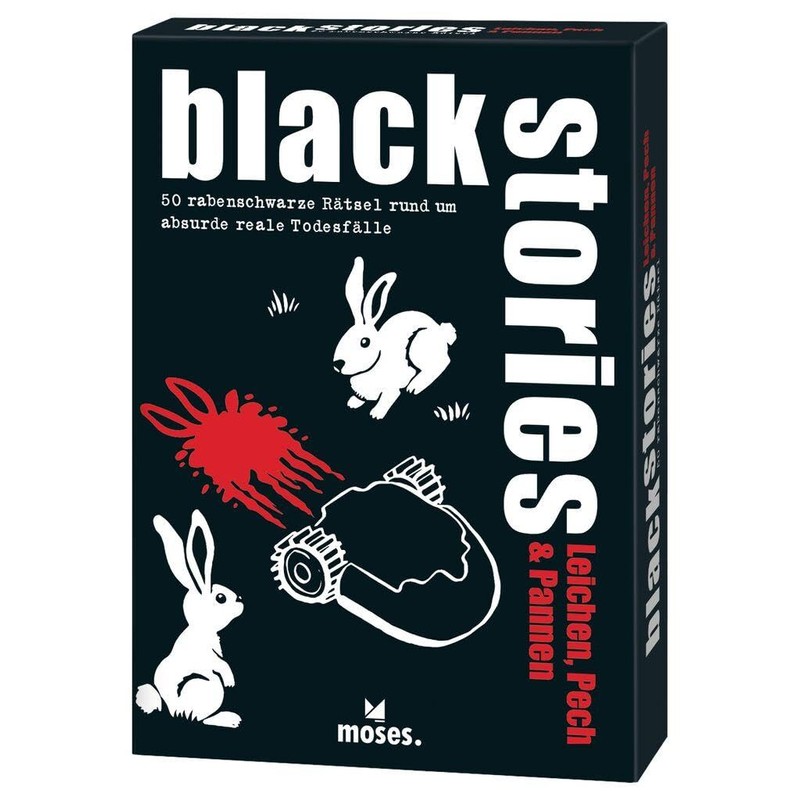- The original from Moses. Publisher ✓ black stories are 50 raven black puzzles that need to be solved together - in the "Corpses, Bad Luck & Breakdowns" edition - 100% true!