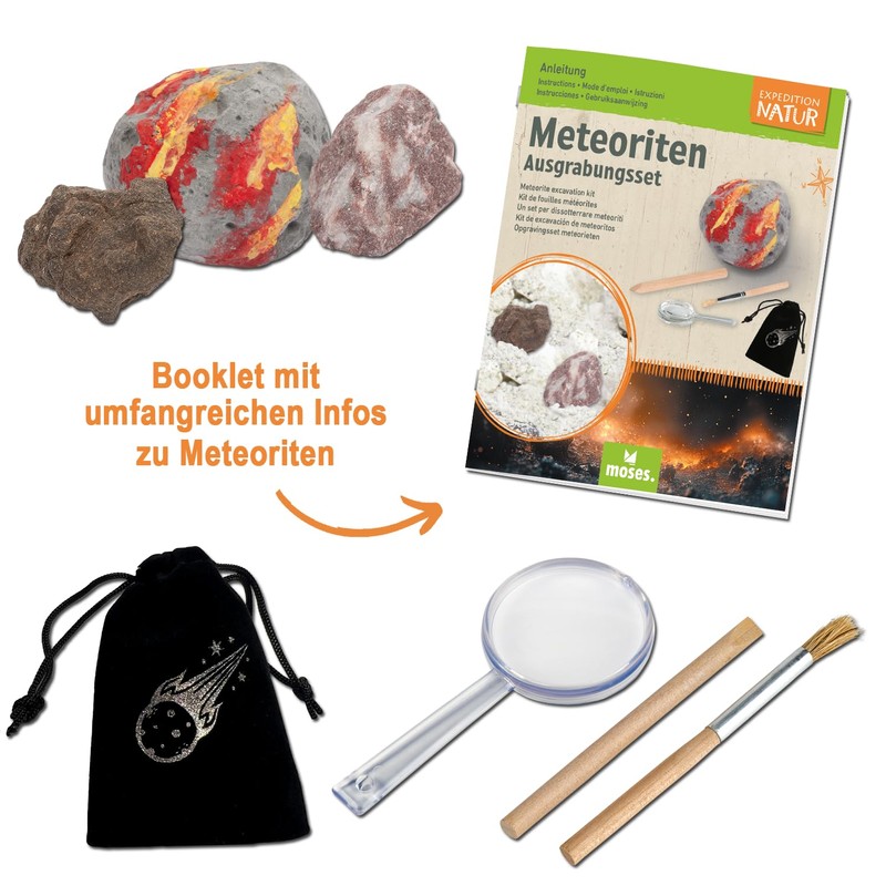 • With tools and booklet ✓ Includes magnifying glass, brush and chisel made of birch wood as well as a booklet with exciting facts about meteorites - for a real researcher feeling