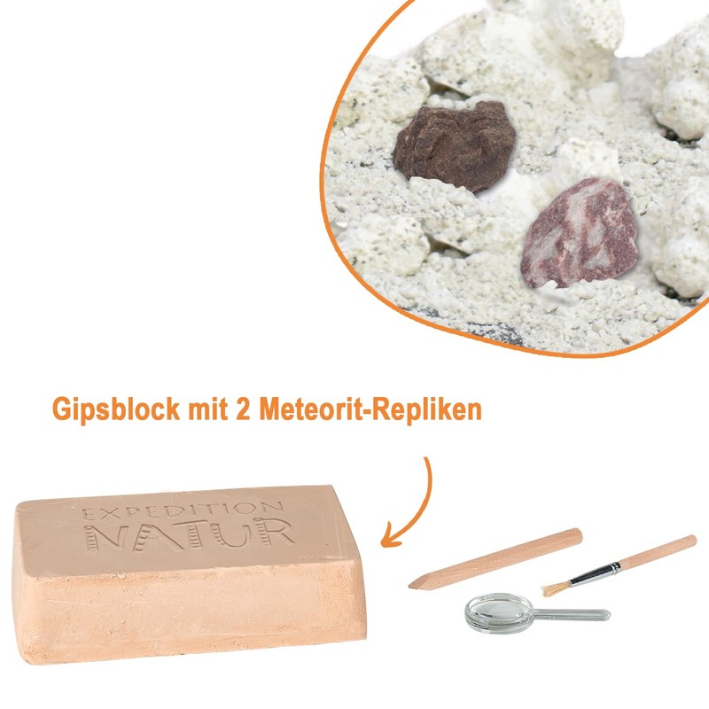 • Fascination of space ✓ Like real astronauts, small researchers embark on an exciting space mission: two mysterious meteorites are hidden in the plaster block. For those who dream of the universe, asteroids and distant celestial bodies