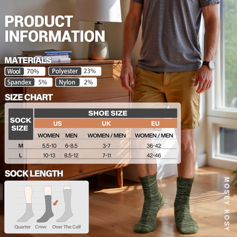 - The Perfect Gift: Delight your loved ones with the gift of comfort and durability. These winter wool socks are not just comfortable but also long-lasting, making them an ideal present for birthdays, Christmas, Valentine's Day, and all festive occasions. Treat both men and women to the luxury of MOSEY KOSY socks!