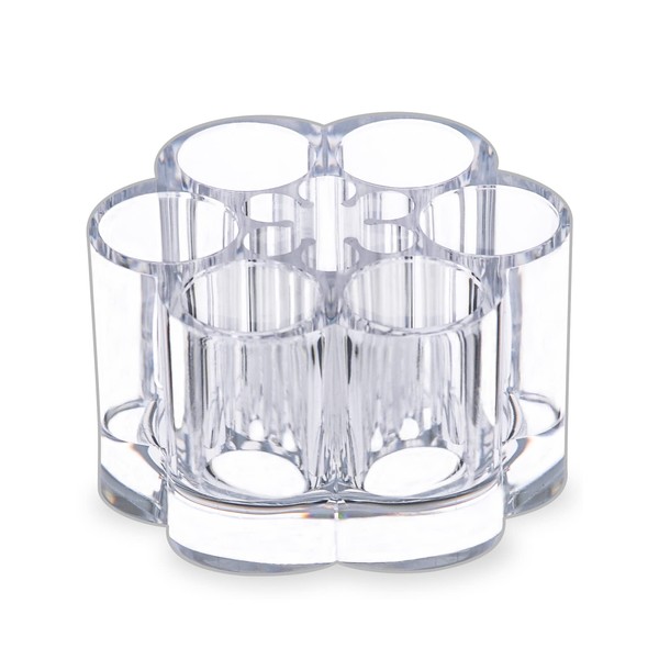 MOSIKER Acrylic Flower Shape Brush and Lipstick Holder with 12 Round Space Small Portable Makeup Organizer