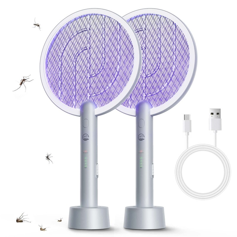 Mosiller Mosiller Electric Fly Swatter Racket 2 Pack, 2 in 1 Bug Zapper with USB Rechargeable Base, 4000 Volt Mosquito Killer with 3-Layer Safety Mesh for Pest Insect Control for IndoorOfficeBackyardCamping
