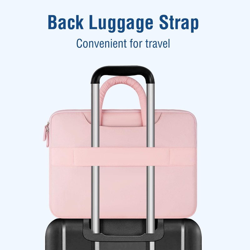 - Considerate design is the back trolley suitcase belt for ease use during business trip. It is really convenient for your happy journey to any where. Slim and lightweight; does not bulk your laptop up and can easily slide into your briefcase, backpack, or other bag. This portable laptop carrying case cover bag is ideal for you to take your laptop out.