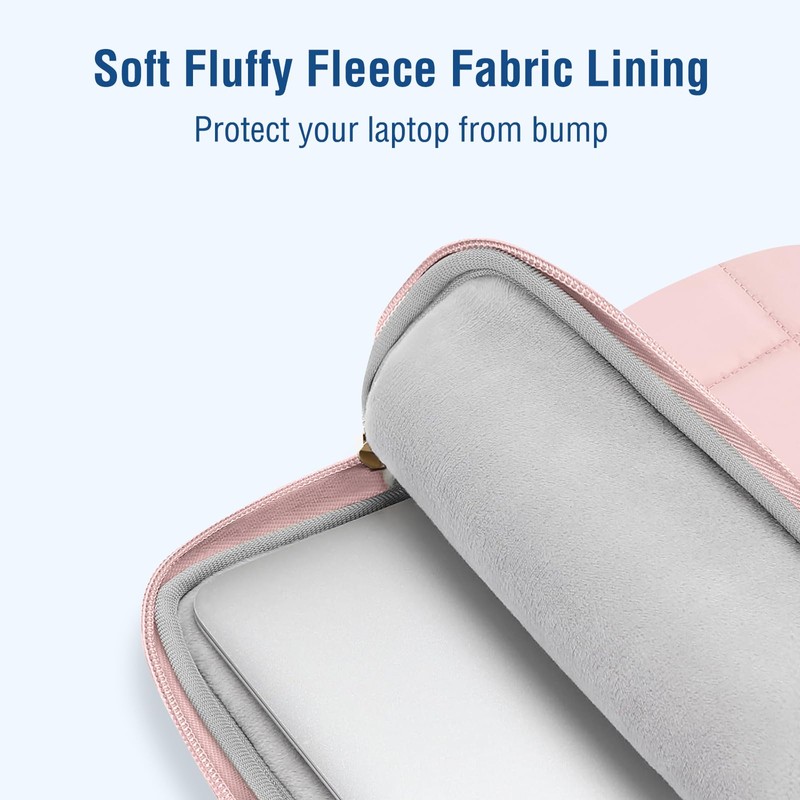 - Made with soft & lightweight rectangle quilted puffy polyester material, features a polyester foam padding layer and fluffy fleece fabric lining. Protect your laptop from bump, shock and accidental scratches. Front & back organizer pockets provide enough space to keep mouse, earphone, pens and notepads, offering added convenience.