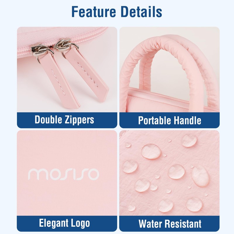 MOSISO 13-14 inch Laptop Case, 13.3 inch Puffy Laptop Sleeve Compatible with MacBook Air 13 13.6/Pro 13/Pro 14,HP Acer Dell ASUS Lenovo, Rectangle Quilted Computer Bag with Handle&Flower Pendant, Pink