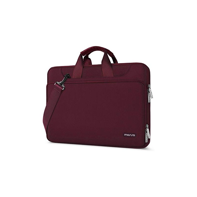 MOSISO 360 Protective Laptop Shoulder Bag Compatible with MacBook Pro 14 inch 2021 M1 Pro/Max A2442,Compatible with MacBook Air/Pro,13-13.3 inch Notebook,Matching Color Sleeve with Belt, Wine Red