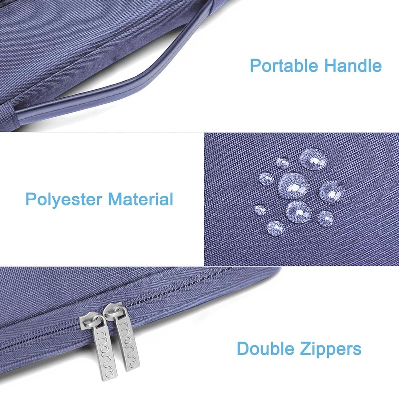 • 360 degree all around protective reinforced interior edge briefcase carrying case bag protect your laptop from any accidental dropping. Extendable handle design makes it to carry your laptop around in comfort, you can also tuck away the handle. Side opening zipper design, avoid accidental dropping of your laptop while carrying. 2 raised & 1 flapover pockets are convenient for quick-access and store cell phone, wallet, keys and other small items.