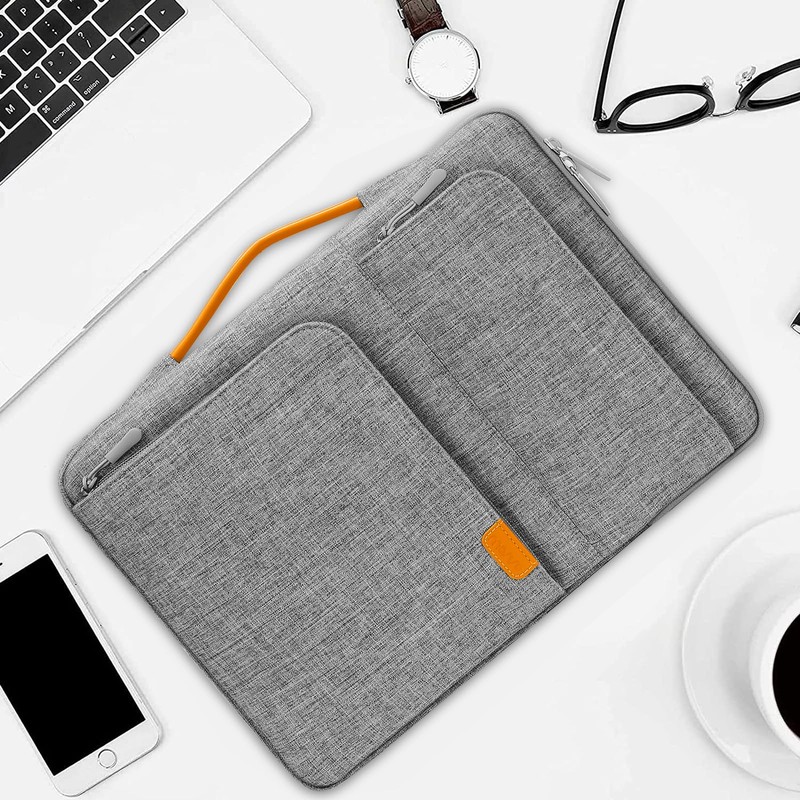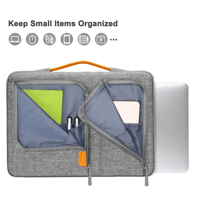 - The laptop sleeve with organizer pockets outer polyester fabric of the case enable you to carry your laptop / notebook / Ultrabook computer in a uniquely sleek style. Features a polyester foam padding layer and fluffy cushion for bump and shock absorption and protection of your device against dust, dirt, bump, shock and accidental scratches.