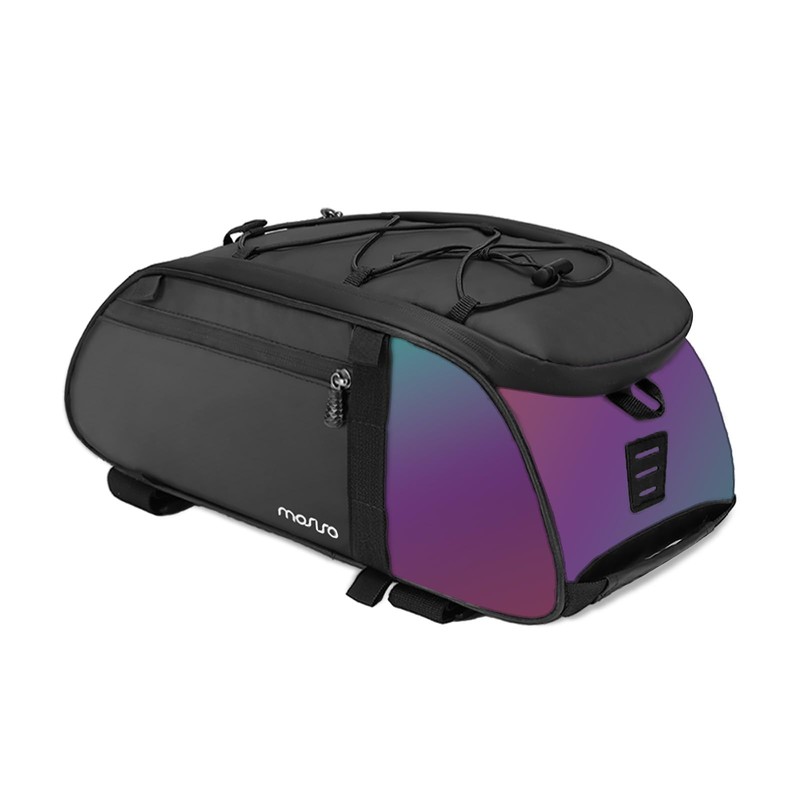 - This bike rack bag is made of waterproof polyester material, effectively prevent rain/water/mud/dust from entering this bag quickly. The end of the bike bag comes with reflective dazzle design, it can increase your night visibility, keep your night ride more safety.