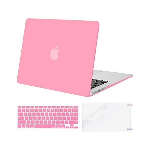 MOSISO Compatible with MacBook Air 13 inch Case (Models: A1369 & A1466, Older Version 2010-2017 Release), Protective Plastic Hard Shell Case & Keyboard Cover & Screen Protector, Pink