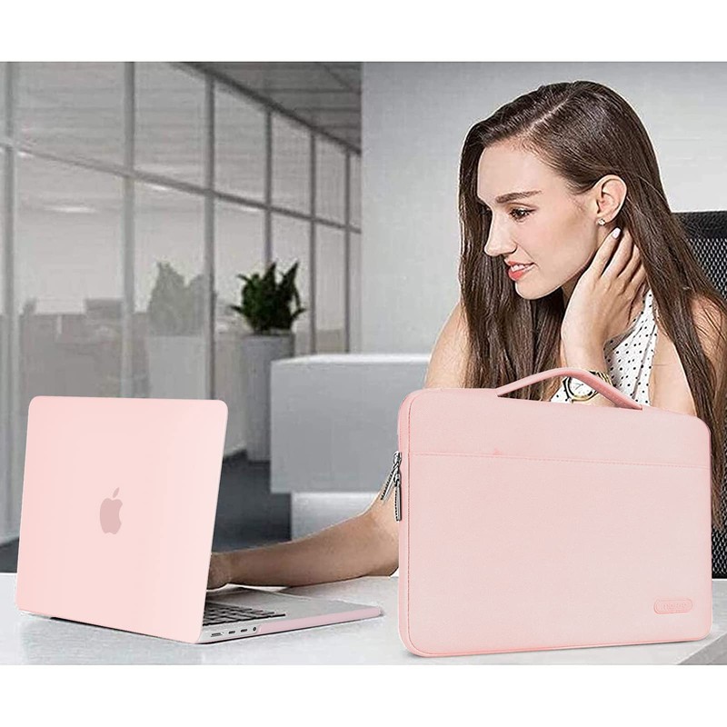MOSISO Compatible with MacBook Air 15 inch Case 2024 2023 Release M3 A3114 M2 A2941 with Touch ID, Plastic Hard Shell&Carrying Sleeve Bag&Keyboard Cover&Webcam Cover&Screen Protector, Chalk Pink