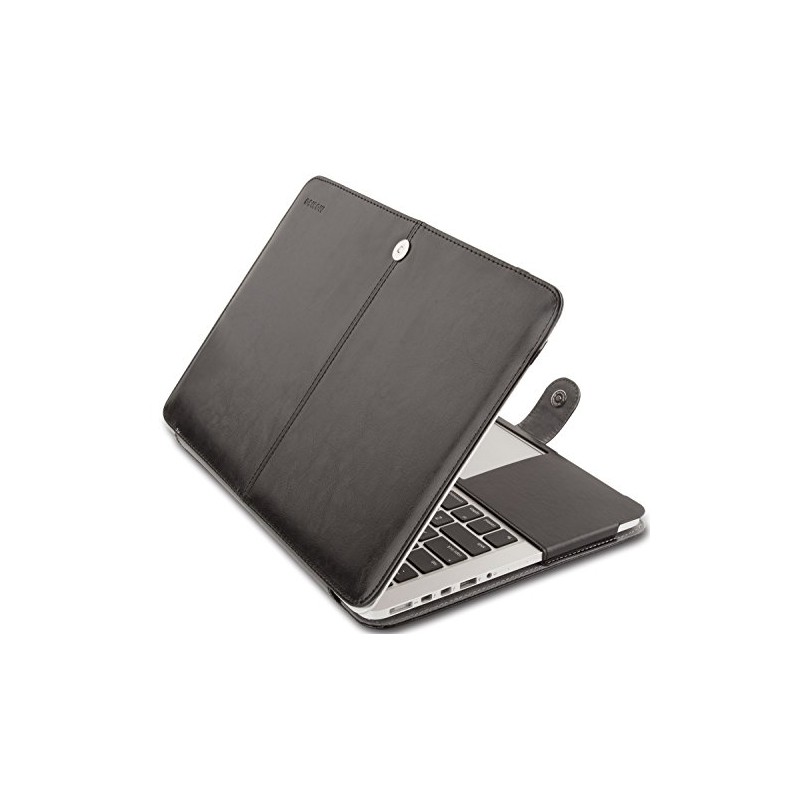 MOSISO Compatible with MacBook Pro 15 inch Retina (A1398, Version 2015/2014/2013/end 2012), Premium PU Leather Book Folio Protective Stand Cover Sleeve, Black