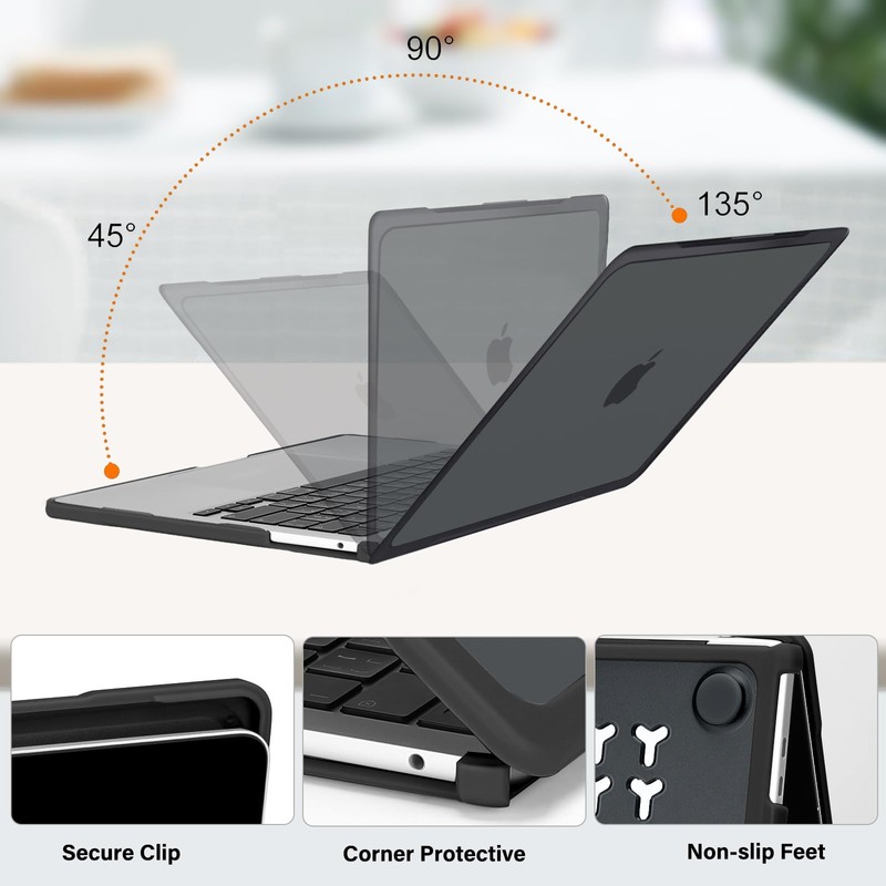 - Diseño SIN recortes, la funda semitransparente permite que el logotipo brille. Totalmente ventilado para un desembolso seguro del calor, acceso total a todos los botones y funciones. Totalmente desmontable, fácil de poner y quitar. El material del parachoques del marco de policarbonato mate y TPU ofrece protección total y protege su computadora portátil contra rasguños y rasguños.