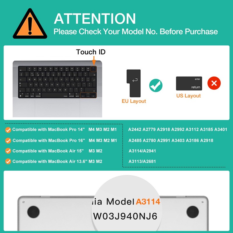 - Designed ONLY to be compatible with MacBook Air 15 inch M3 M2 chip 2024 2023 (model: A3114 / A2941) & compatible with MacBook Air 13.6 inch M3 M2 chip 2022-2024 (model: A3113 / A2681) & compatible with MacBook Pro 14 inch M4 / M3 / M2 / M1 Pro/Max chip 2024 2023 2022 2021 release (model: A3112 / A3185 / A3401 / A2918 / A2992 / A2779 / A2442) & compatible with MacBook Pro 16 inch M4 / M3 / M2 / M1 Pro/Max chip 2024 2023 2022 2021 release (model: A3403 / A3186 / A2991 / A2780 / A2485).