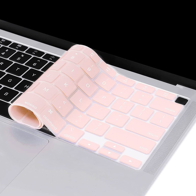 MOSISO Keyboard Cover Compatible with MacBook Air 13 inch 2022 2021 2020 Release A2337 M1 A2179 Retina Display with Touch ID Backlit Magic Keyboard, Waterproof Protective Silicone Skin,Chalk Pink