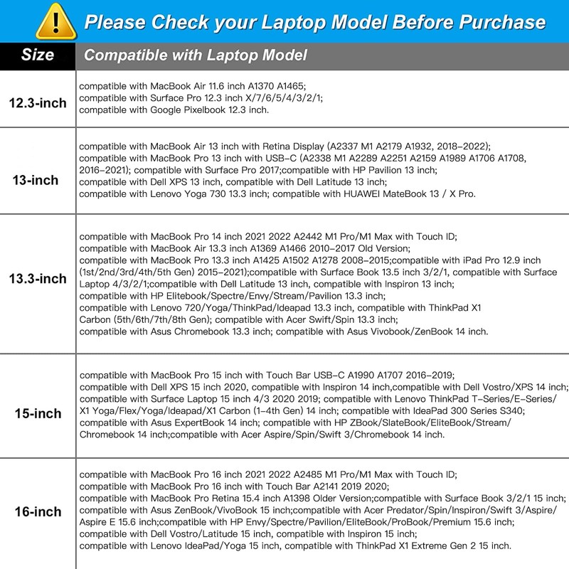 - Compatible with MacBook Air 13 13.6 inch with Retina Display Touch ID 2025-2018 (M4 A3240/M3 A3113/M2 A2681/M1 A2337/A2179/A1932), compatible with MacBook Pro 13 2025-2016 (M2 M1 A2338/A2289/A2251/A2159/A1989/A1706/A1708); Compatible with Surface Pro 11/10/9/8/X 13, Compatible with iPad Pro 12.9 inch (1st/2nd/3rd/4th/5th/6th Gen) 2015-2022; Compatible with Dell XPS/Latitude 13; Compatible with HP Pavilion 13; Compatible with Lenovo Yoga 13.3; Compatible with HUAWEI MateBook 13/X 13/X Pro 13.9.