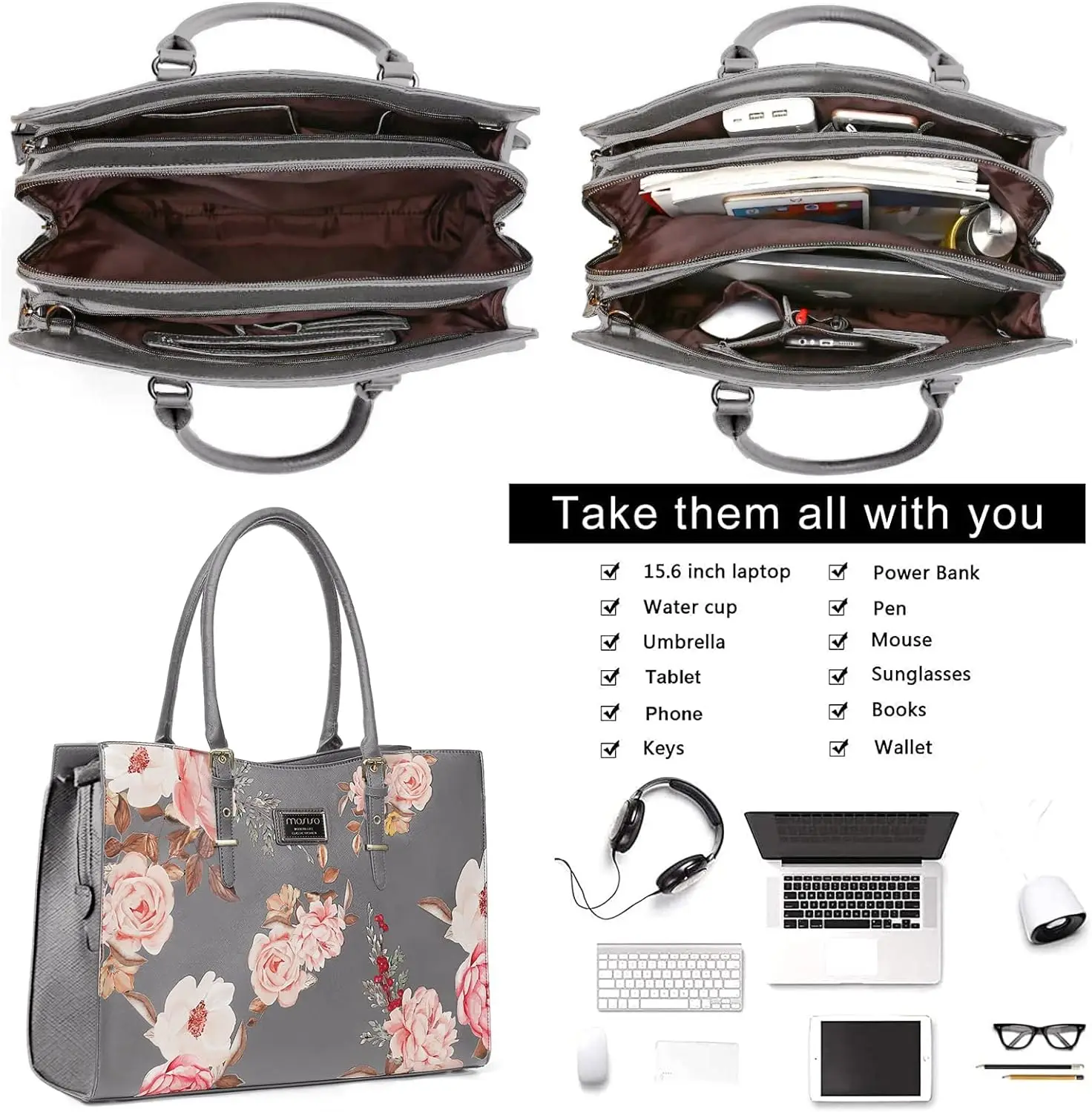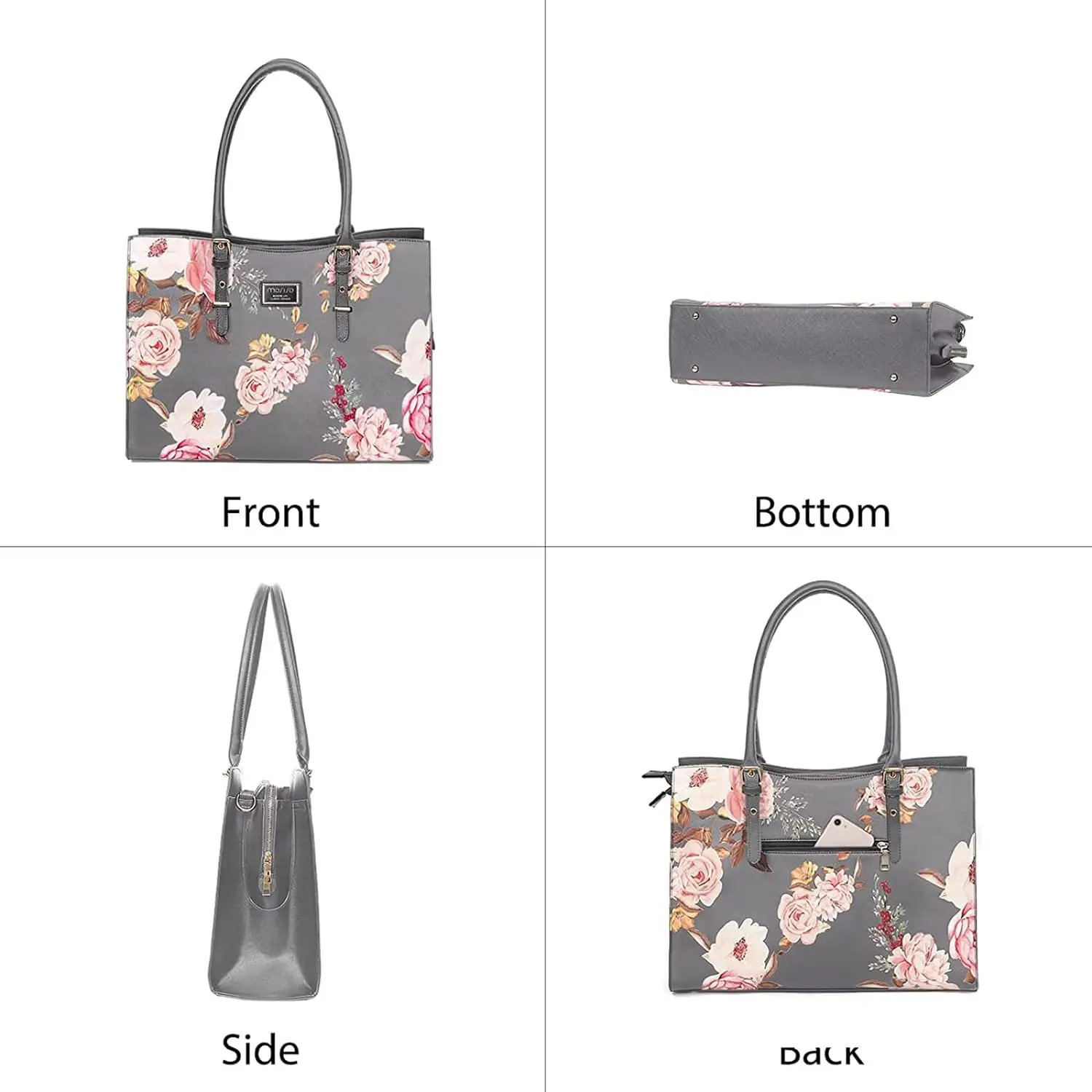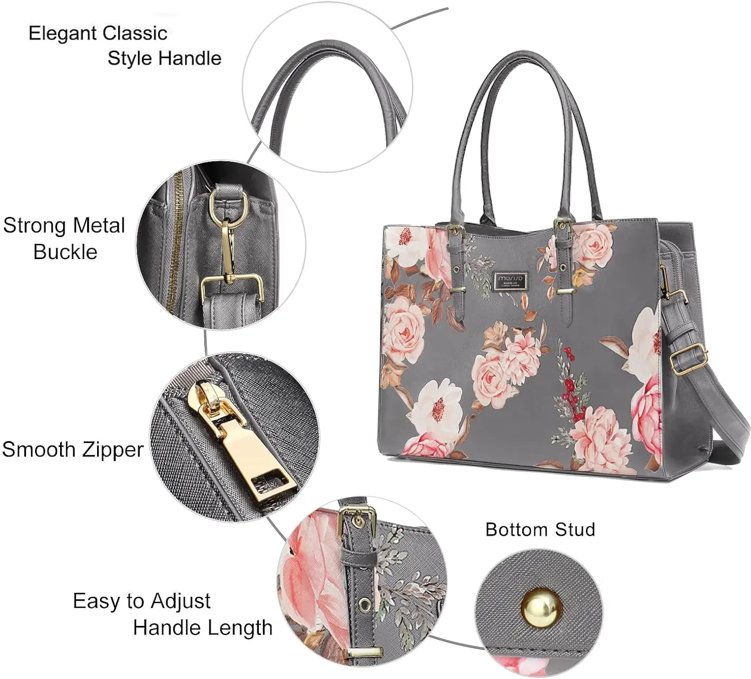 MOSISO 15.6 inch Peony PU Leather Laptop Tote Bag for Women