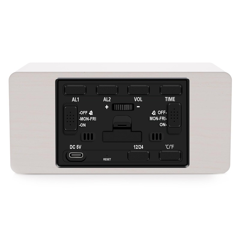 - ?Stylish Wood Grain Surface- This exquisite digital alarm clock is made of high-quality wood and has a stylish design. It is not only a clock, but also a perfect decoration for your home. You can put it anywhere in your room, on your bedside nightstand or living room table. The stylish appearance and multiple functions make it suitable as a gift for your family or friends.