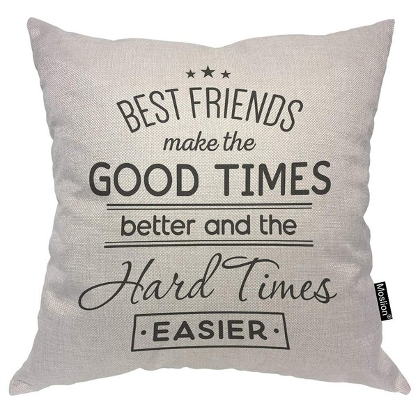 Moslion Quote Pillows Best Friends Make The Good Times Better and The Hard Times Easier Word Throw Pillow Cover Decorative Pillow Case Square Cushion Accent Cotton Linen Home 18x18 Inch