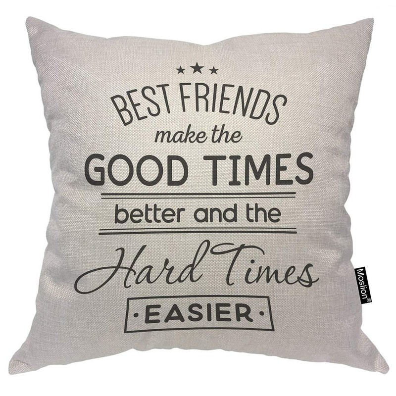 **Moslion Quote Pillows Best Friends Make The Good Times Better And The Hard Times Easier Word Throw Pillow Cover Decorative Pillow Case Square Cushion Accent Cotton Linen Home 18x18 Inch** **Brand: Moslion** Package: 1 Pcs Cushion Cover/Shell No Insert or Filler