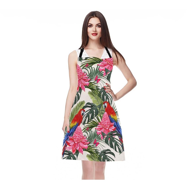 Moslion Tropical Scenery Apron,Beautiful Floral Summer with Tropical Palm Leaves Parrot Apron,Adjustable Neck Bib Apron for Men Women,Suitable for Kitchen Cooking Waitress Chef Apron